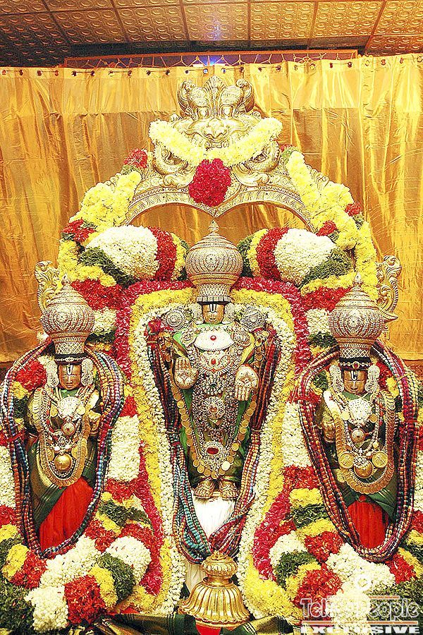 On the concluding of the three day Annual Pavithrotsavam snapana Tirumanajanam (celestial bath) was performed to the processional diety of Lord Malayappaswamy along with His consorts Sridevi and Bhudevi at Samapangi prakaram inside Sri vari Temple, Tirumala on Monday. Later in the evening the processional deities were taken out in procession around four mada streets with Pavithramala adnored.