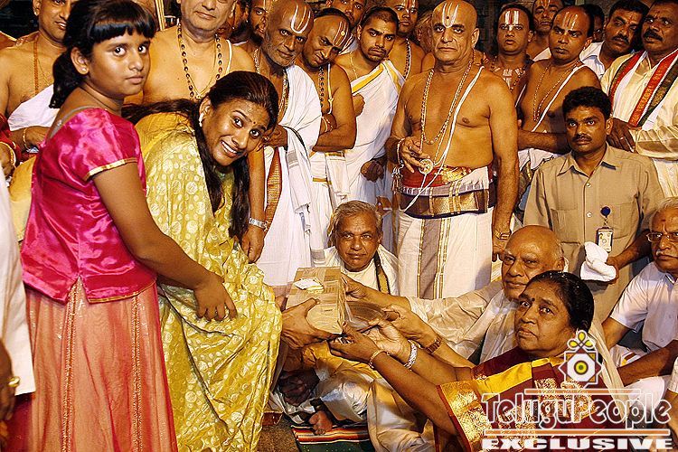 Ms. D.A.Kalpana of Bangalore has donated 1kg of Gold and Sri R. Rajan of Tirupur has donated 16 lakhs cash for Ananda Nilaya Anantha Swarna Mayam and the same has been handed over to Hon'ble Chief Minister of Andhra Pradesh inside Sri Vari Temple, Tirumala on Monday evening.