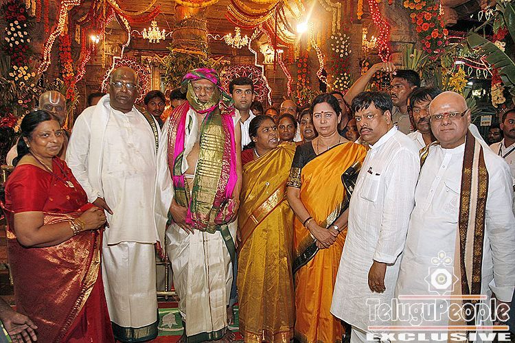 The Chief Minister carried the silver plate containing the `vastrams' on his head from the Bedi Anjaneya Swamy temple to the Venkateswara temple, accompanied by temple paraphernalia and `nadaswaram' music.Later he presented the `vastrams' to the chief priest, inside the sanctum sanctorum and TTD Chairman presented Sri Vari Prasadam at Ranganayakula Mandapam.