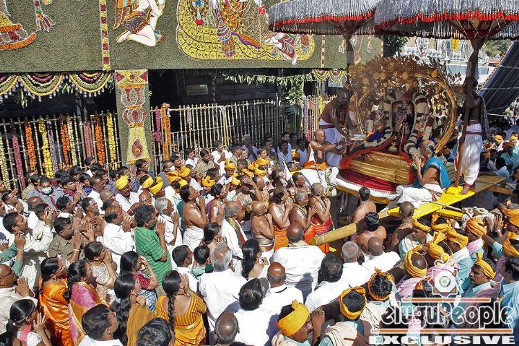 He rides on the Kalpa Vruksha vahanam and goes around the four mada streets around the temple giving darshan to thousands of people who come for witnessing the Srivari Brahmotsavam.