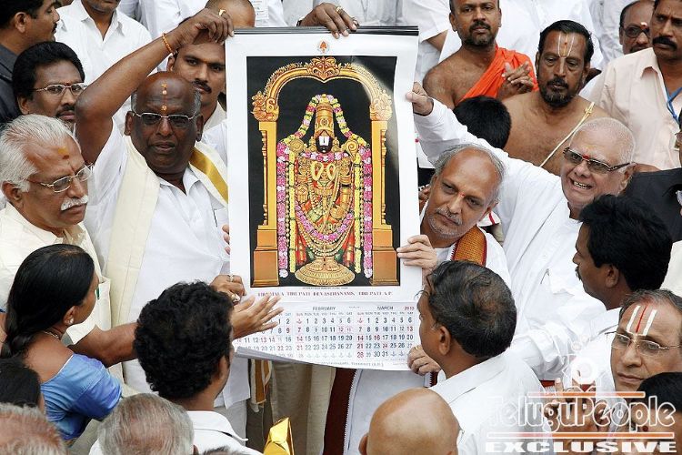 Sri D.K.Audikesavulu, Chairman TTDs, Sri I.Y.R.Krishna Rao, Executive Officer, TTDs released S.V. & S.P- 2010 calenders in front of Sri Vari RATHOTSAVAM on Monday.