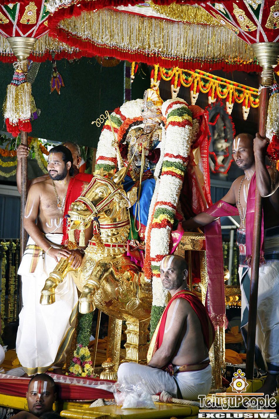 Lord Venkateswara rides his horse chariot on the evening of eighth day of the Srivari Brahmotsavam and enthralls lakhs of pilgrims who descend on Tirumala as the festival reaches a crescendo and heads towards conclusion.The Horse procession denotes one of his most popular and well received avatars as Kalki – a good Samaritan who fights the evil and protects the righteous and good things in the Kaliyuga.The Kalki avatar of Lord Venkateswara is hailed as the most significant in the celestial lore’s of Malayalappa. The Horse ( Ashwa) is described as the only living witness to the first meeting of Venkateswara and his consort Padmavati, their romance and finally culmination in love and wedding.