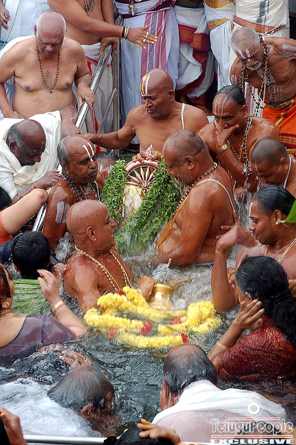 Devotees, who came from different parts of the country, took a `holy dip' in the `Srivari pushkarini' (temple tank) in connection with the `Chakrasnanam' observed on the concluding day (ninth day) of the `Brahmotsavam' on Tuesday. Religious fervour marked the occasion. Lord Chakratalwar was taken around in procession early in the morning to Varahaswamy temple where priests conducted `Snapana thirumanjanam.'Thousands of pilgrims, who congregated on the holy steps of the `pushkarini,' waiting patiently for the auspicious moment when the temple priests immersed the idol of Lord Chakra in the sacred tank, plunged into the holy waters.