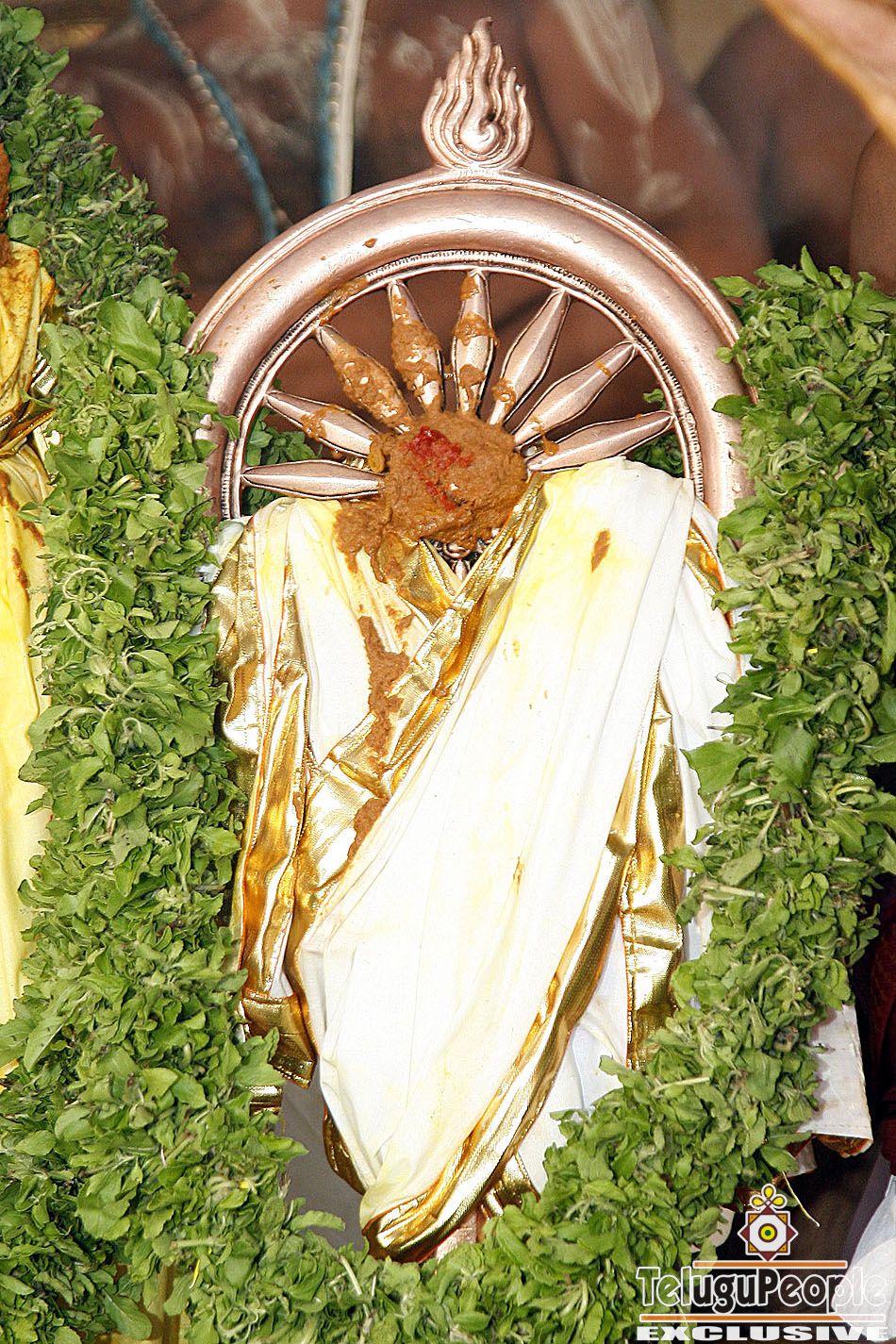 Devotees, who came from different parts of the country, took a `holy dip' in the `Srivari pushkarini' (temple tank) in connection with the `Chakrasnanam' observed on the concluding day (ninth day) of the `Brahmotsavam' on Tuesday. Religious fervour marked the occasion. Lord Chakratalwar was taken around in procession early in the morning to Varahaswamy temple where priests conducted `Snapana thirumanjanam.'Thousands of pilgrims, who congregated on the holy steps of the `pushkarini,' waiting patiently for the auspicious moment when the temple priests immersed the idol of Lord Chakra in the sacred tank, plunged into the holy waters.