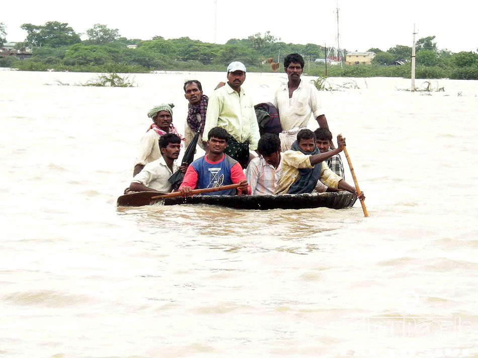 The threat of floods looms large over thousands of people in Krishna and Guntur districts of Andhra Pradesh as 10.5 lakh cusecs water was being released from the Prakasam Barrage in Vijayawada on Monday. The death toll in the heavy rains in several northern districts of Karnataka increased to 194 with 25 unidentified bodies found in several places.Already, several island villages in the Krishna estuary have been inundated, while many more in the Diviseema region, which was devastated by a cyclone in 1977, are rapidly getting submerged. As many as 30 villages upstream of the barrage are marooned since the structure is unable to discharge the massive inflows it is receiving from the Nagarjunasagar.