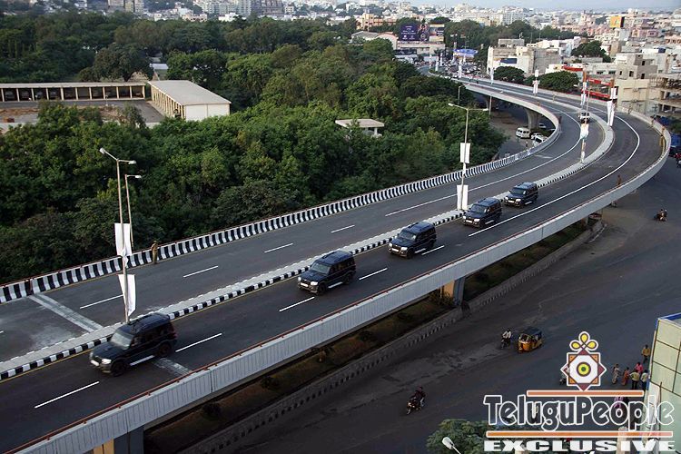 The P.V. Narasimha Rao Elevated Expressway, inaugurated on Monday, will help people reach the international airport at Shamshabad in greater style.Only cars were allowed on the first day. The motorists competed with each other to overtake, ignoring the 60 kmph speed limit on the four-lane expressway.Four-wheeler drivers can have a joyride since they need not deal with autorickshaws, motorcyclists, and other transport vehicles while speeding through the expressway.The Chief Minister, Mr K. Rosaiah, inaugurated the 11.66 km long flyover. Subsequently, he went on an inspection trip along with the union urban development minister, Mr Jaipal Reddy, and his cabinet colleagues, Mr Anam Ramnarayan Reddy and Mr Danam Nagender.