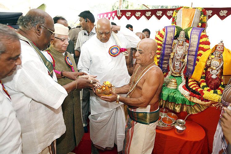Kalyanamasthu is a meeting of hearts told Sri N.D.Tiwari, HE Governor of Andhra Pradesh He has attended the 4thphase of Kalyanamasthu programme at Lalitha Kala Thoranam in Hyderabad on October 28.Speaking on this occasion he said that Tirumala is a great pilgrimage centre and Seven Hills are sacred hills and also said that marriage is a very solemn event, particular this mass marriage he added. He blessed all the 153 couples.Dr. Rosaiah garu, Hon’ble Chief Minister of Andhra Pradesh said that TTD has done a good work i.e, Kalyanamasthu for five phases across the state. Nearly 35,000 couples have got married in the five phases of Kalyanamasthu. He congratulated the TTD for their service to the thousands of common people.