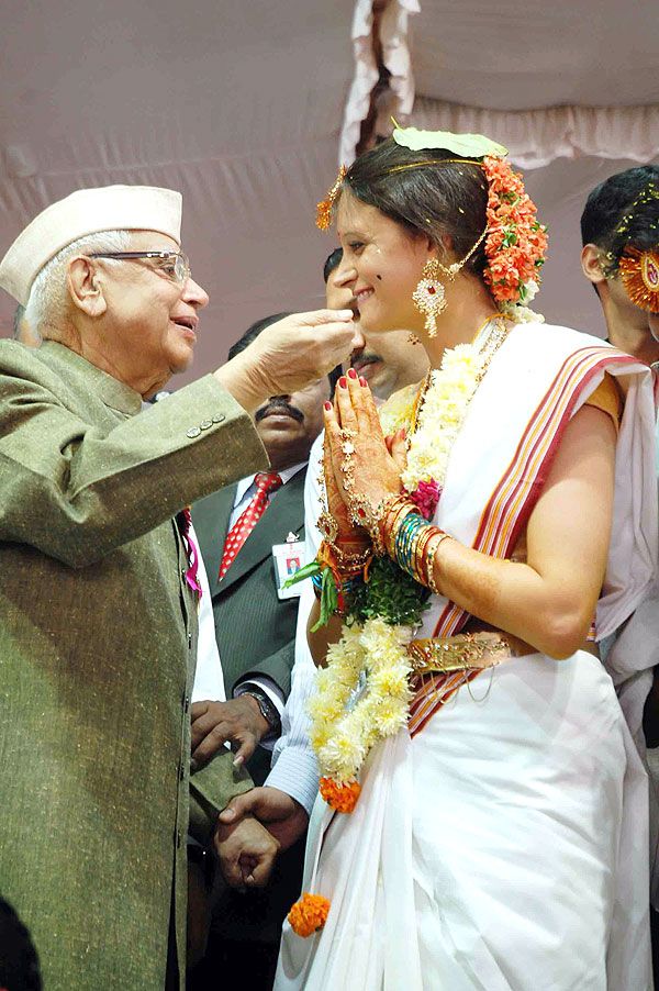 Kalyanamasthu is a meeting of hearts told Sri N.D.Tiwari, HE Governor of Andhra Pradesh He has attended the 4thphase of Kalyanamasthu programme at Lalitha Kala Thoranam in Hyderabad on October 28.Speaking on this occasion he said that Tirumala is a great pilgrimage centre and Seven Hills are sacred hills and also said that marriage is a very solemn event, particular this mass marriage he added. He blessed all the 153 couples.Dr. Rosaiah garu, Hon’ble Chief Minister of Andhra Pradesh said that TTD has done a good work i.e, Kalyanamasthu for five phases across the state. Nearly 35,000 couples have got married in the five phases of Kalyanamasthu. He congratulated the TTD for their service to the thousands of common people.