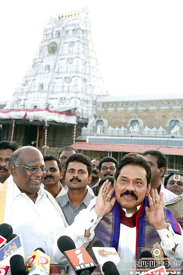 President of Sri Lanka Mr. Mahinda Rajapaksa accompanied by his wife Ms.Shiranthi Rajapakse visited Sri Vari Temple, Tirumala on Saturday evening. On his arrival in front of Sri Vari Temple the priests and officials have welcomed the President with Temple honors ( ISTHIPAKAL). After dharshan of lord, the Chairman TTDs Sri D.K.Audikesavulu, Chairman TTDs and I.Y.R.Krishna Raa, Executive Officer presented Sri Vari Prasadam,Books and Photo Frame, the veda pandits of the temple have blessed him with Vedic Hymns at Ranganayakula Mandapam.