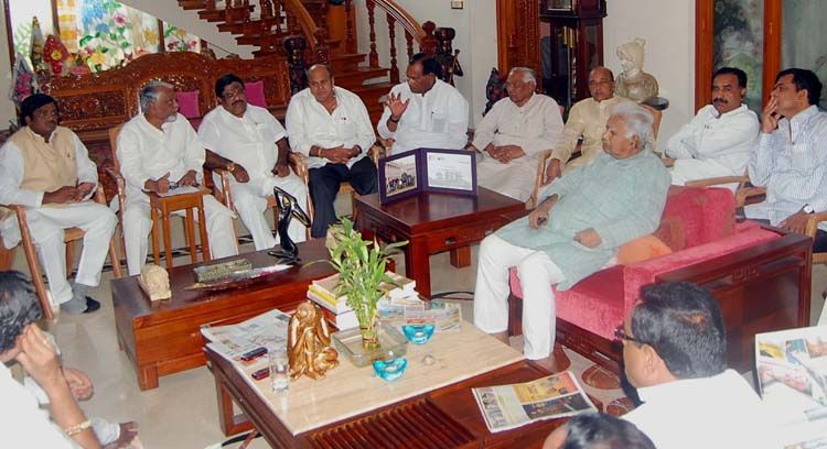 Congress Telengana leaders (MPs,MLAs and MLCs) held a meeting at MP Vivek ’s residence to discuss on Sri Krishna Committee outcome and resignation thereafter, in Hyderabad on Sunday. MPs K.Keshav Rao, G.Vivek, Manda Jagannatham, Minister K.Jana Reddy and others are seen.