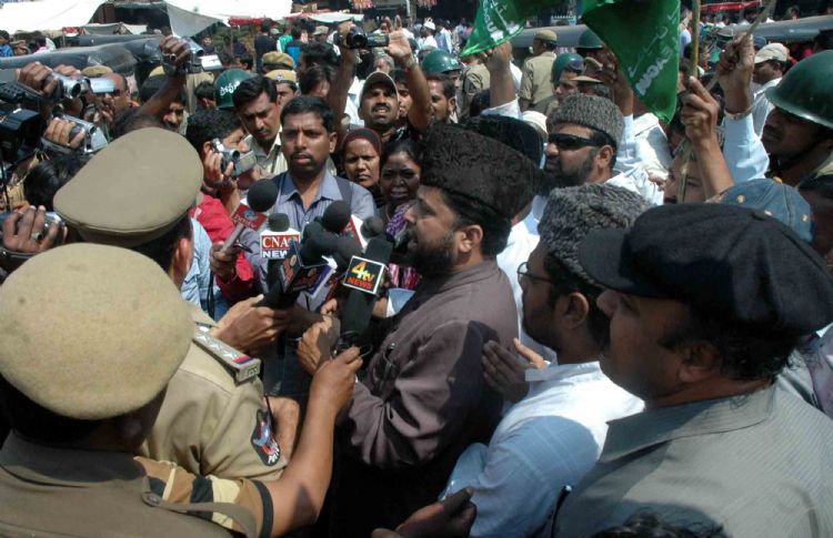 Police arrest pro-Telangana activists when they attempt to take out a rally as part of the Million March call given by the Telangana Political Joint Action Committee, near the historic Charminar in Hyderabad on Thursday. INN Photos