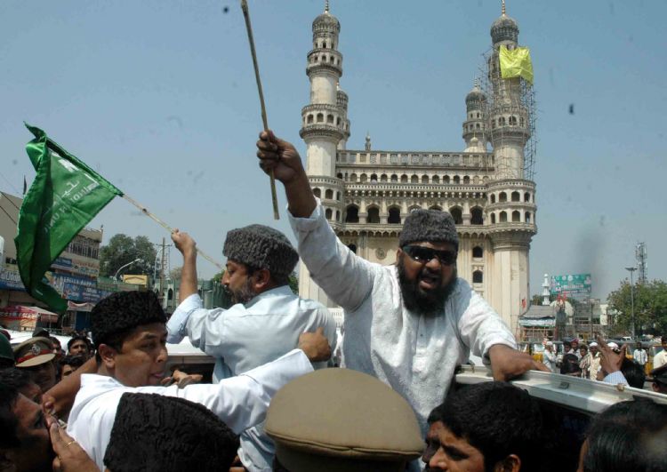 Police arrest pro-Telangana activists when they attempt to take out a rally as part of the Million March call given by the Telangana Political Joint Action Committee, near the historic Charminar in Hyderabad on Thursday. INN Photos