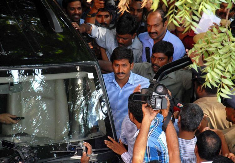 YSR Congress party president YS Jagan Mohan Reddy coming out of CBI office at Koti here on Friday. He appeared before the CBI in connection with the Obulapuram Mining Corporation case - INN Photos