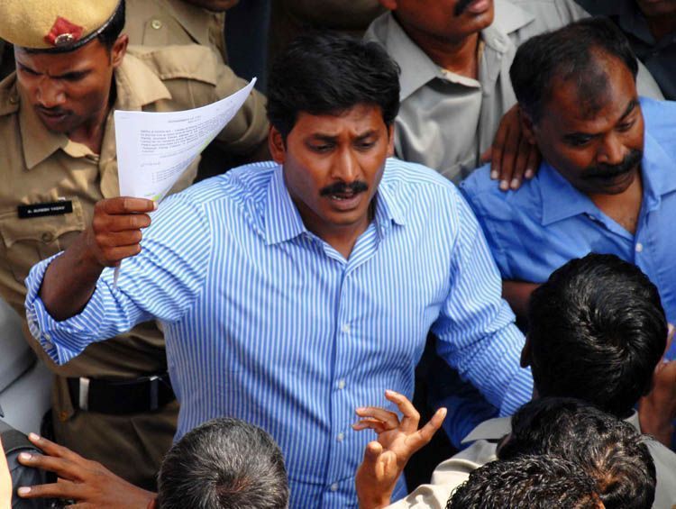YSR Congress party president YS Jagan Mohan Reddy coming out of CBI office at Koti here on Friday. He appeared before the CBI in connection with the Obulapuram Mining Corporation case - INN Photos