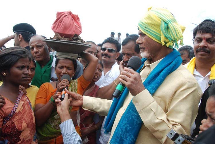 TDP president N.Chandrababu Naidu's Rythu Poru Yatra on Friday entered into Kurnool district. Naidu along with party leaders walked through many villages and fields and interacted with famers, farm labourers and women to know their troubles first hand.