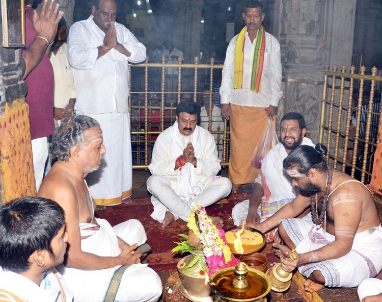 Actor Nandamuri Balakrishna Friday visited Sri Kalahasteeswara Swami temple and participated in Rudrabhishekam. He was received with full temple honours by the Executive officer and Veda pandits. He was accompanied by TDP MLA (Vizag) V.Ramakrishna and former chairman SAAP PR Mohan.
