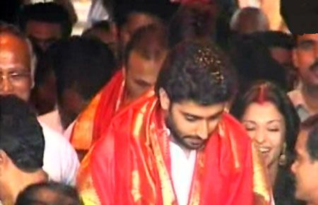 Aish-Abhi in Tirumala pics Mor
