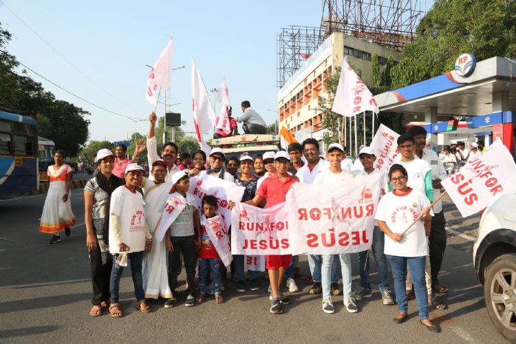 Run for Jesus on Easter Sunday in Hyderabad at Lal Bahadur Stadium. Large number of Christians gathered at the event.