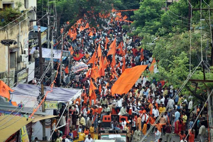 Governor of Haryana Bandaru Dattatreyya and many top BJP leaders participated in the Hanuman Shoba Yatra at Shri Ram Mandir in Gowliguda on Thursday - INN Photos