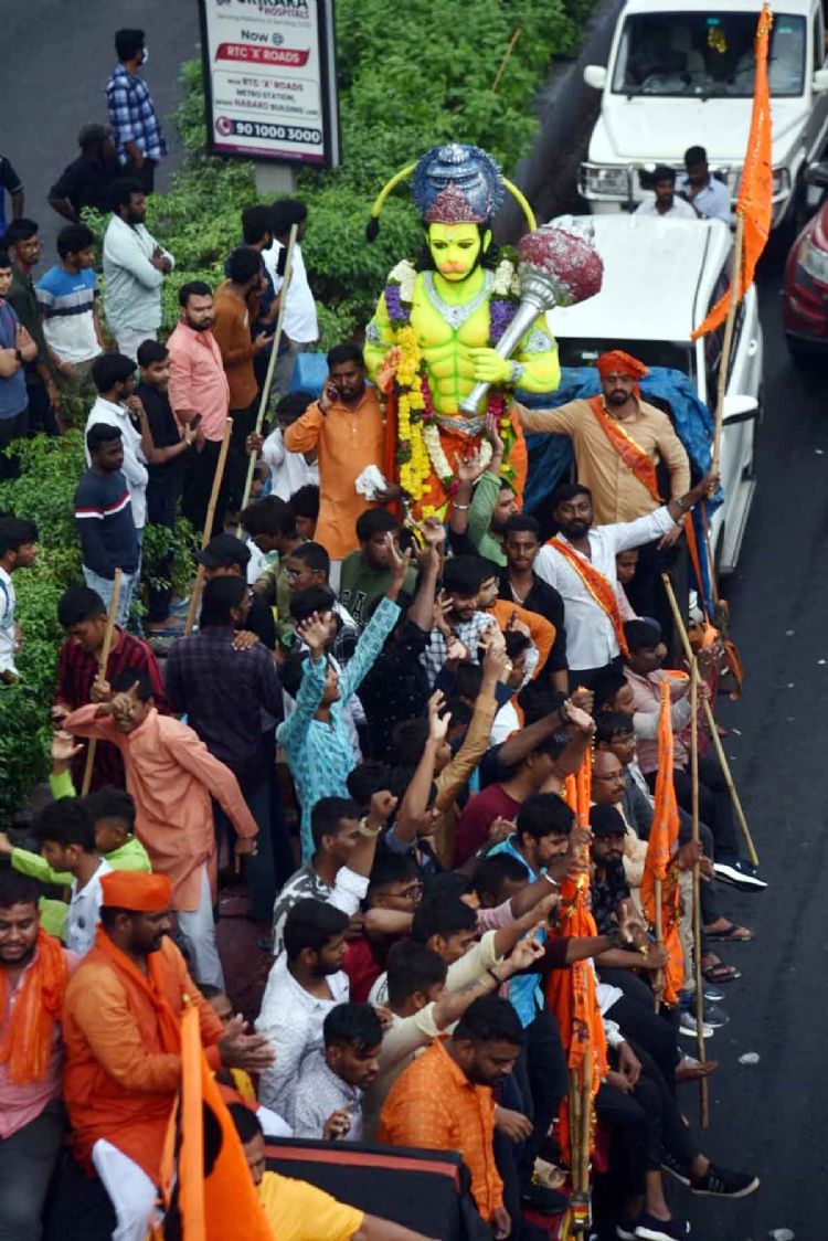 Governor of Haryana Bandaru Dattatreyya and many top BJP leaders participated in the Hanuman Shoba Yatra at Shri Ram Mandir in Gowliguda on Thursday - INN Photos