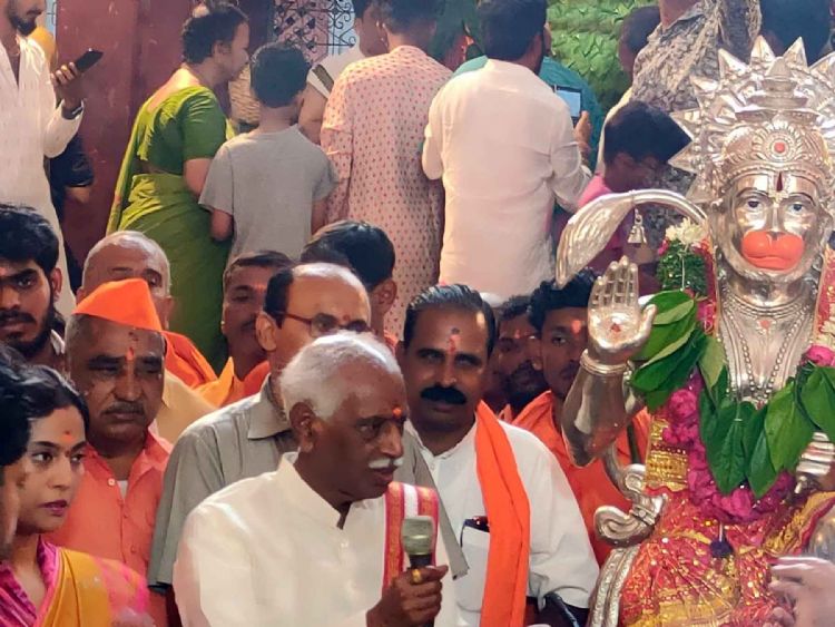 Governor of Haryana Bandaru Dattatreyya and many top BJP leaders participated in the Hanuman Shoba Yatra at Shri Ram Mandir in Gowliguda on Thursday - INN Photos