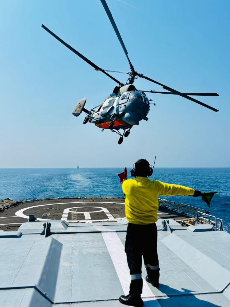 Cross-deck flying operations being conducted during MILAN2026 off Visakhapatnam coast