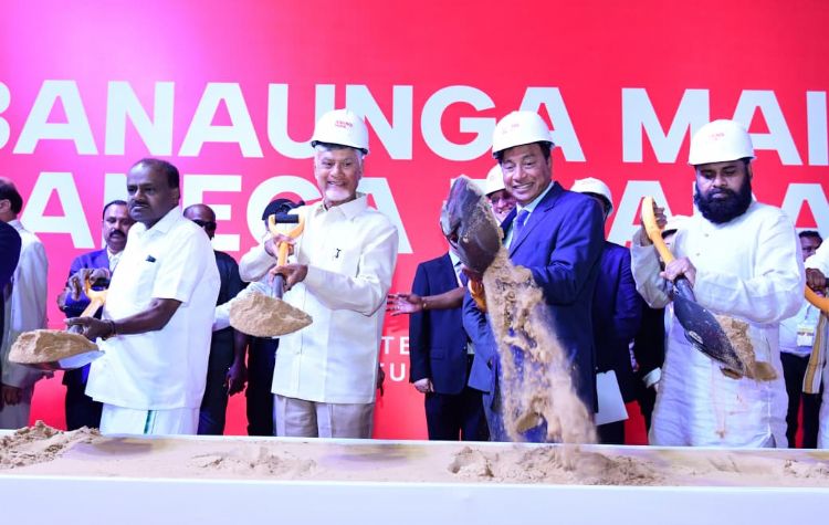 Chief Minister Nara Chandrababu Naidu along with union minister HD Kumara Swamy