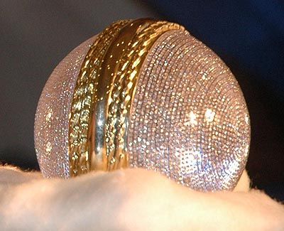 Golden Ball: A gold cricket ball encrusted with 6,286 diamonds and carrying a price tag of Rs.30 lakh on display at a D Damas exhibition in Lucknow on Wednesday.