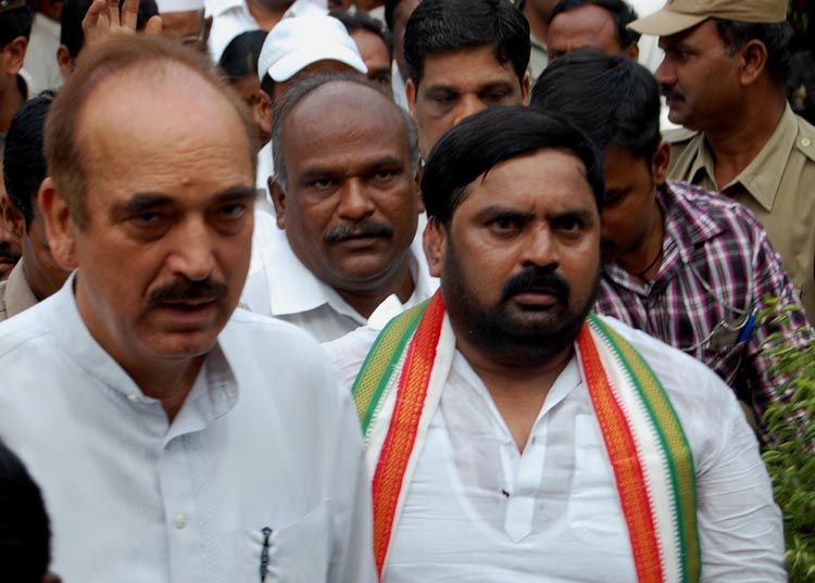 Congress In-Charge of Andhra Pradesh Affairs Ghulam Nabi Azad meets party leaders at the Lake View Guest House in Hyderabad on Monday. INN Photos