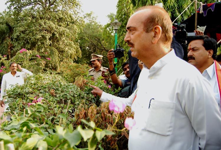 Congress In-Charge of Andhra Pradesh Affairs Ghulam Nabi Azad meets party leaders at the Lake View Guest House in Hyderabad on Monday. INN Photos
