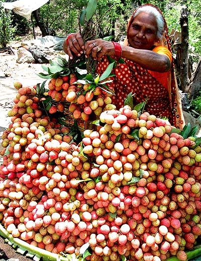 SUMMER TREAT: An elderly woman fruit seller selling "litchi", a delicious summer fruit on the roadside in Jamshedpur.