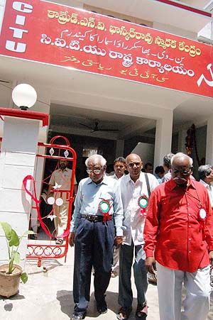 Building Trade Unionism: CITU general secretary Dr. M.K. Pandey coming out after inaugrating newly built CITU state office building at Musheerabad on wednesday in Hyderabad.