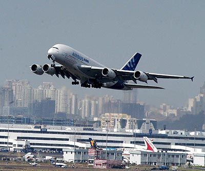 Smooth Take - Off: Worlds biggest passenger plane, Airbus A380, taking off from Mumbai Airport on Wednesday.