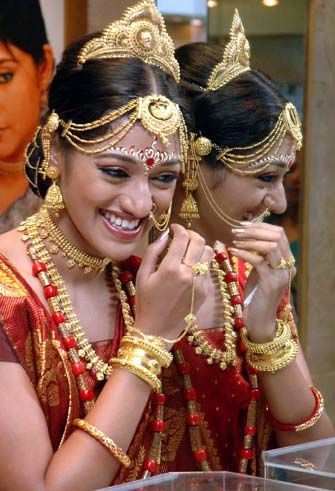 Golden moments: A model displaying wedding jewellery collection in Kolkata on Thursday