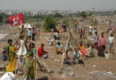 Land Struggle: As the struggle for land launched by the CPI(M) continued for the tenth day on Wednesday with people attempting to occupy Government lands at Ramanthapur and Serilingampally in Hyderabad. Homeless people tries to occupy Government land at Church Colony, Uppal, on the city s outskirts on Wednesday.