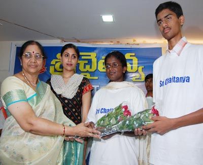 Sri Chaitanya Toppers: Top rankers of Eamcet 2007 from SriChaitanya Junior college were felicated by their college principal at Hyderabad on Thursday