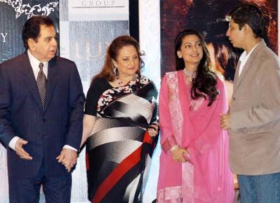 Lux Beauty: Veteran actors Dilip Kumar and Saira Banu with Bollywood diva Juhi Chawla and Omar Qureshi at the launch of "Lux inspiring Beauty" a book compiled and edited by Quereshi in Mumbai on Thursday night
