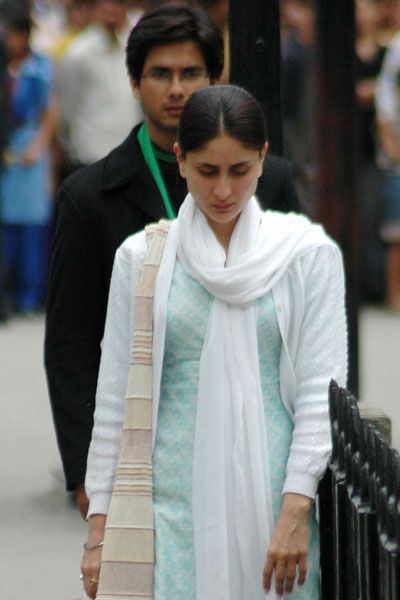 The Train : Bollywood actors Karina Kapoor and Sahid Kapoor during the shooting of their forthcoming film The Train in Shimla on Sunday.