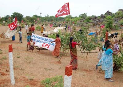Landless poor: Landless and homeless people laying huts in the government owned lands in Polkampally village in Ranga Reddy district on Thursday. The land struggle movement has been launched by CPI and CPM-I a month ago through out the State has been intensified so much that Chief Minister YS Rajasekhar Reddy held talks with leaders of Communist parties in Hyderabad on Thusrday.