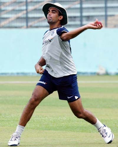 Left arm throw: India s Zaheer Khan throws a ball during a practice session ahead of the second test cricket match against Bangladesh in Dhaka May 24, 2007.