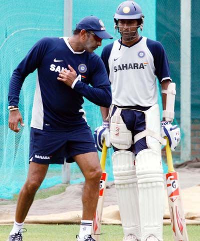 Follow the advice: India s Ravi Shastri (L) gives advice to Wasim Jaffer during a practice session ahead of the second test cricket match against Bangladesh in Dhaka May 24, 2007.