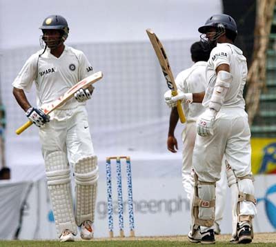 runs as his team mate Wasim Jaffer watches during the first day of their second test