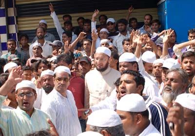 Be Quiet: The MIM member of Parliament Asaduddin owaisi apealing the public not to indulge arson at Mecca Masjid during prayer time on Friday in Hyderabad.