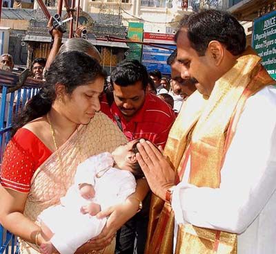 Maha Dwara Darshan: TTD Chairman B.Karunakar Reddy wishing a mother with her baby waiting at the main entrance of the