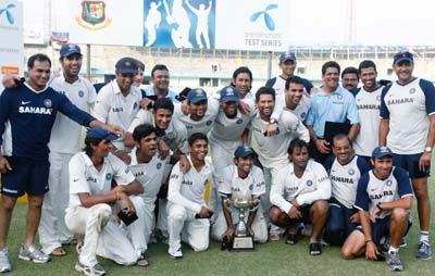 Team Victory: India s players pose after winning the cricket test series against Bangladesh in Dhaka May 27, 2007.