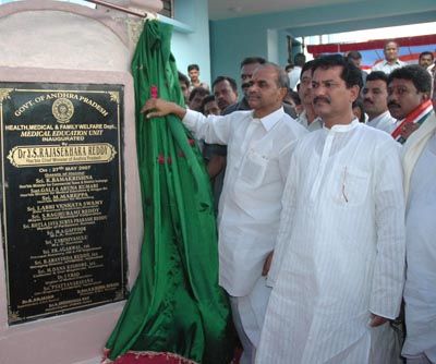 CM in Kurnool: Chief Minister YS Rajasekhara Reddy inaugurating the Medical Education Unit at Kurnool on SUnday. Also seen in the picture is Minister M.Mareppa and other congress party leaders of the district.