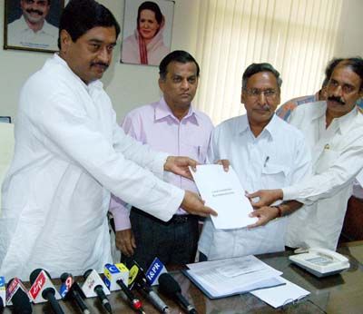Koneru Report Out: Revenue Minister Dharmana Prasada Rao receiving Koneru Ranga Rao Land Committee reports from Jelly Willson MLC, Rama Krishna CPI leaders in Hyderabad on Sunday.