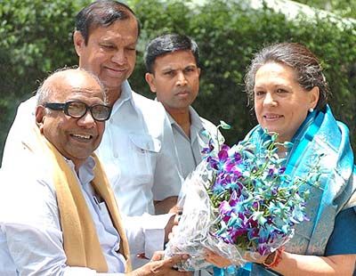 Congress president Sonia Gandhi at her residence in Delhi on Monday. DMK leader and