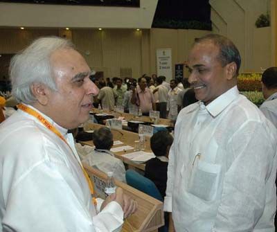 On the sidelines: Chief Minister Dr.Y.S.Rajasekhara Reddy discussing with Union Minister for Science