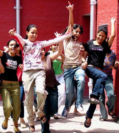 Celebration: 10th class Students of St Thomas School in a jubilant mood after CBSE results declared in New Delhi on Tuesday.